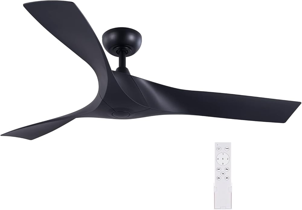 VONLUCE 52" Industrial Ceiling Fan No Light with Remote Control, Mid Century Ceiling Fans with 3 Walnut ABS Blades, Indoor Ceiling Fan for Kitchen Bedroom Living Room, Black