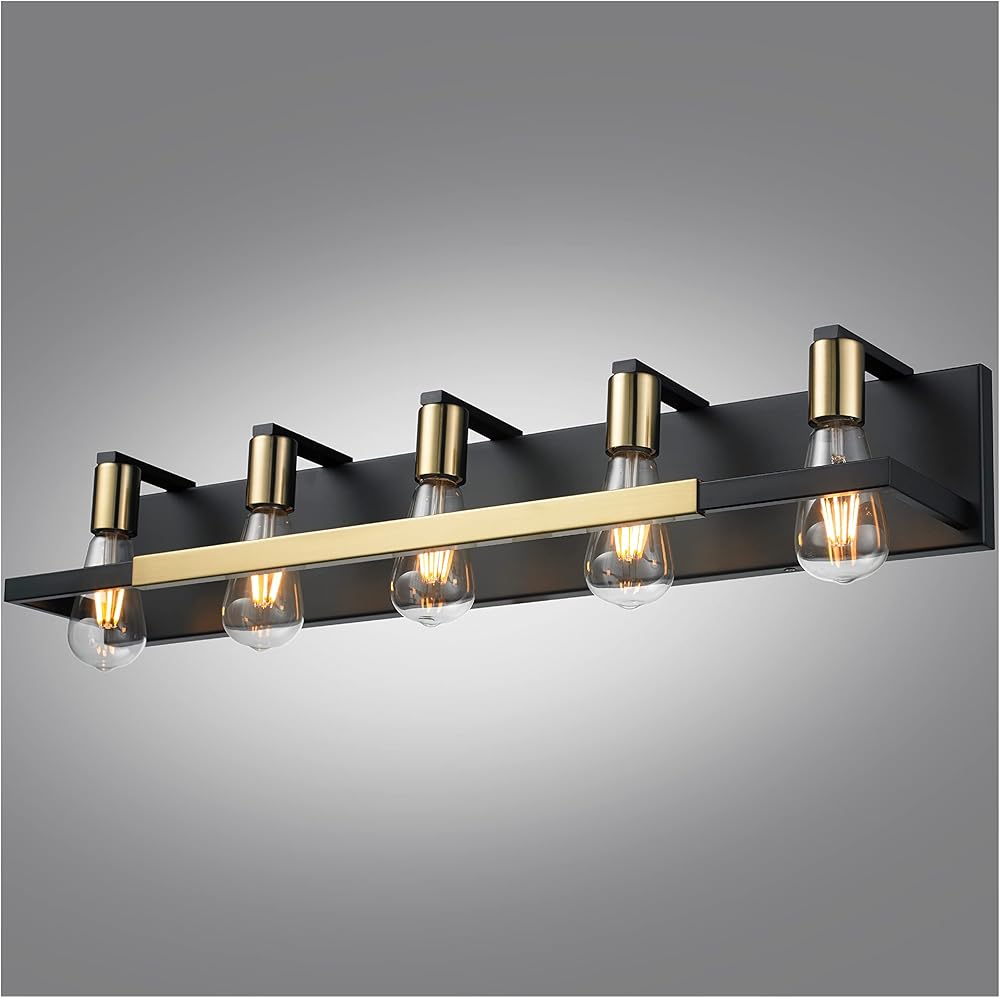 Hamilyeah 5 Light Bathroom Vanity Light Fixture Black and Gold, 32 inch Vintage Bathroom Lighting Fixture Over Mirror, Industrial Wall Mounted Lighting for Living Room, Dining Room