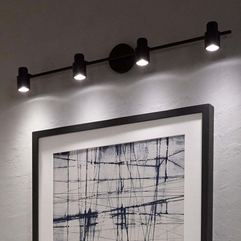 Pro Track Melson 4-Head LED Wall or Ceiling Track Light Fixture Kit Spot-Light GU10 Dimmable Adjustable Black Modern Transitional Kitchen Bathroom Living Room Dining Hallway Bedroom Decor 40" Wide