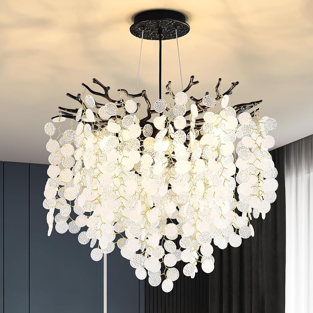 Modern Crystal Chandelier, Black Tree Branch Chandeliers Adjustable Height 6-Light 18”, Candle Pendant Light Fixtures for Dining Living Ceiling Room Bedroom Hallway