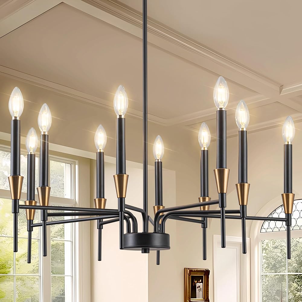 Chandelier, Dining Room Light Fixture Black Farmhouse Chandelier Black Chandelier Light Fixture Chandelier for Living Room Large Chandelier for Bedroom 10-Light Dining Room Chandelier