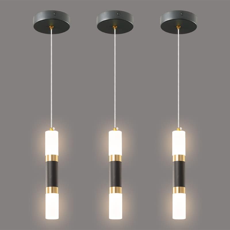Modern Kitchen Island Light Fixture Dimmable LED Black Mini Pendant Light Bedroom Bedside Table Black Gold Small Pendant Lighting (3-Pack)