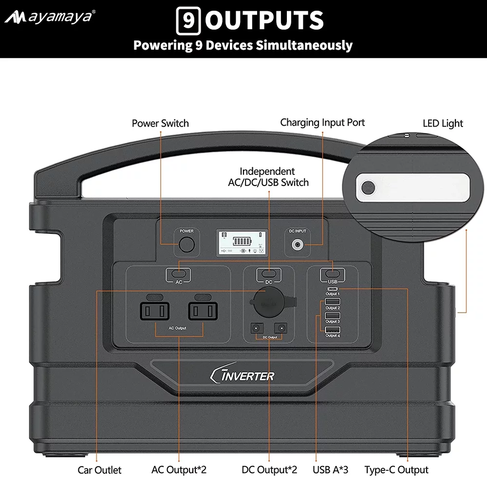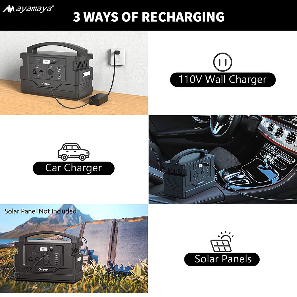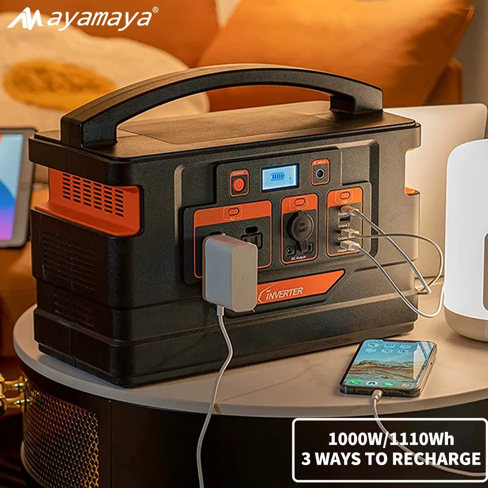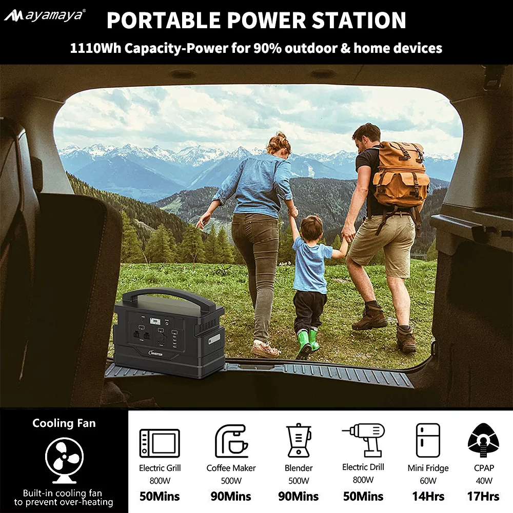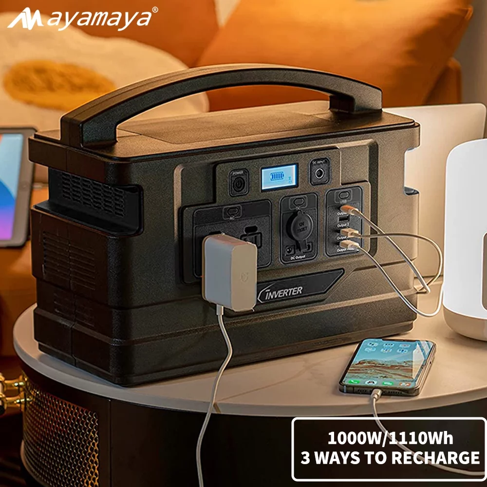 Portable Power Station 1000W. AYAMAYA 1110Wh Lithium Polymer Battery Solar Generator Emergency Backup Power Supply for Outdoor Camping Home Road Trip Rv Adventure(Black)