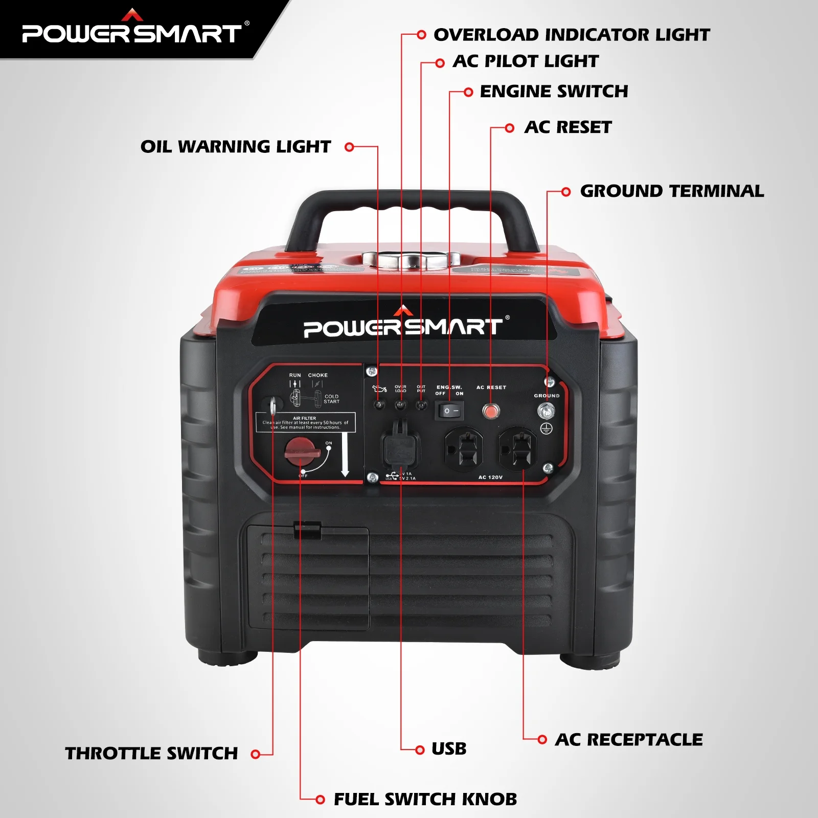 PowerSmart 1500 Watt Portable Gas Power Generator for Outdoor Camping and Home Use. Inverter Generator