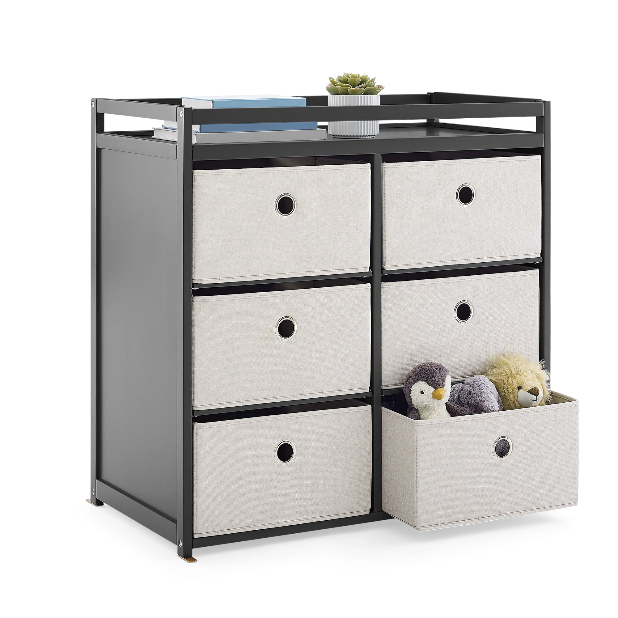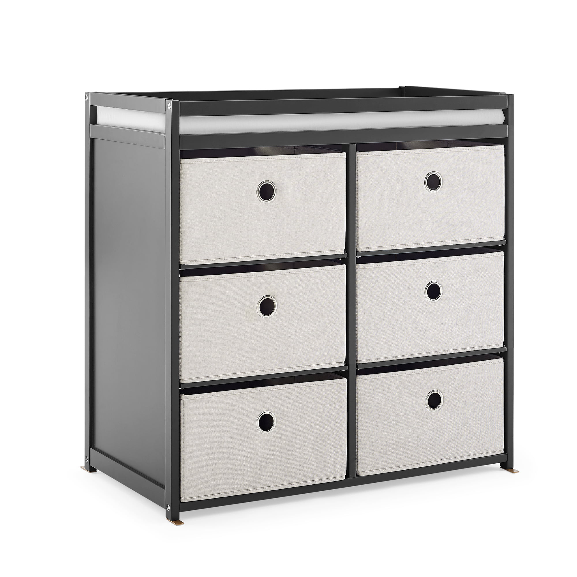 Delta Children Hayes Changing Table with Fabric Bins, Charcoal Grey/Flax