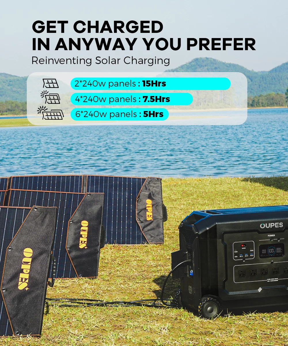 OUPES Mega5 Portable Power Station 4000W. 5040Wh Solar Generator with 6x240W Solar Panels. Solar Battery Station Made for Emergency. Home Backup. Outdoor Camping RV/Van