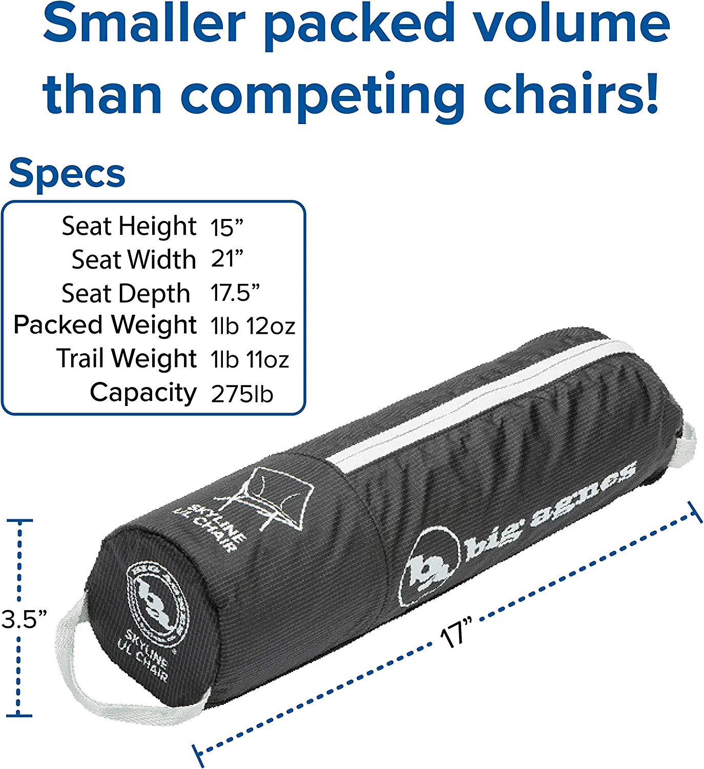 Big Agnes Skyline UL Ultralight Backpacking Furniture, Chair (Black)