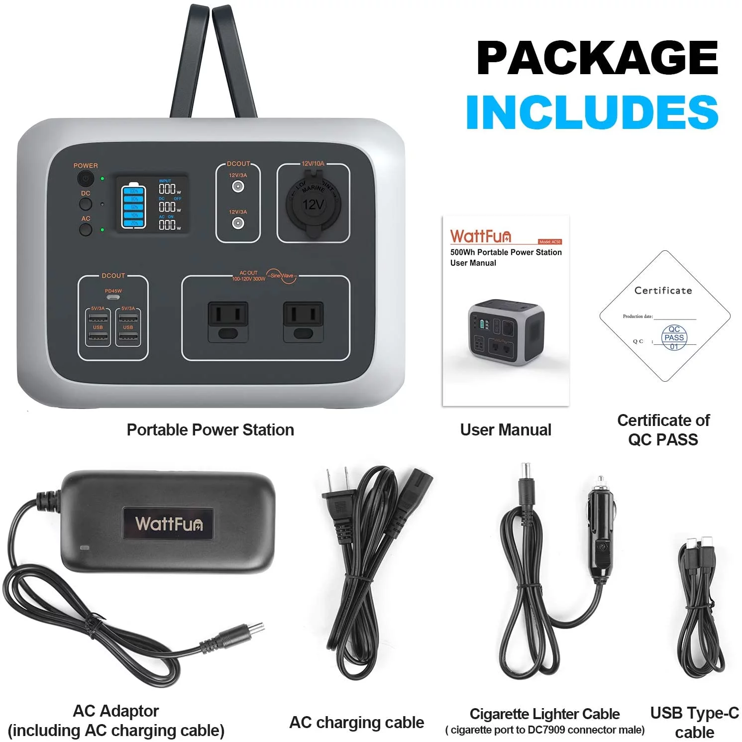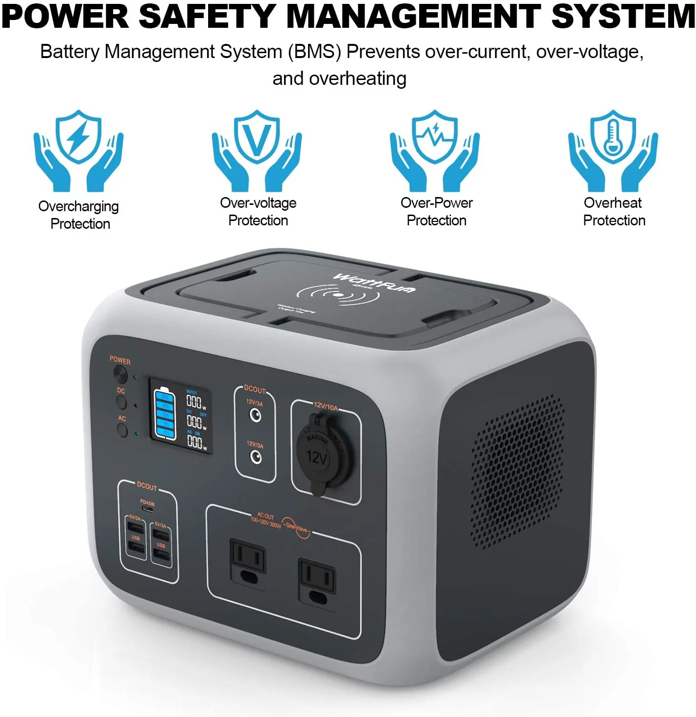 WattFun Portable Power Station. 500Wh Solar Generator Wireless Charging. Backup Battery Dual 110V/300W Pure Sine Wave AC Outlet. Type-C PD45W. 4 USB Ports for CPAP Camping Outdoors Travel Home
