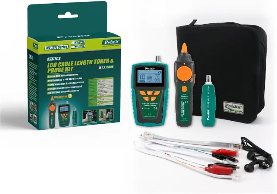 Pro'sKit MT-7071N LCD Cable Length Toner & Probe Kit Big LCD GUI Design Anti-Filtering Cat.5/6/7 Cable Length Measurement(MT-7071N)