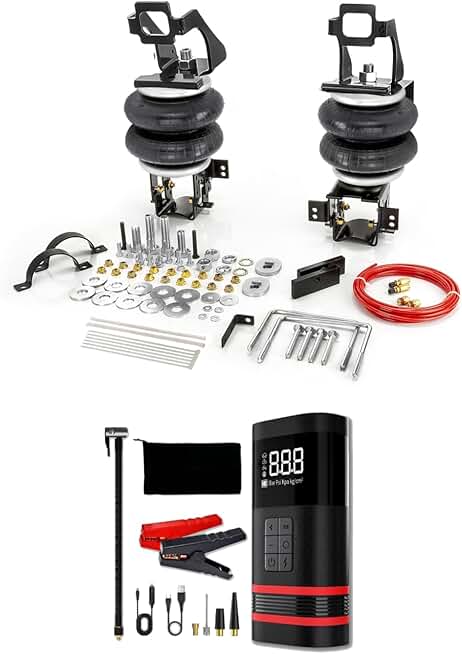 TORQUE Portable Air Compressor and Air Suspension Bags Kit for 1999-2004 Ford F250 F350 and 2008-2010 Ford F250 F350 2WD 4WD F-250 F-350 Super Duty Rear Helper Bag 5000 lbs