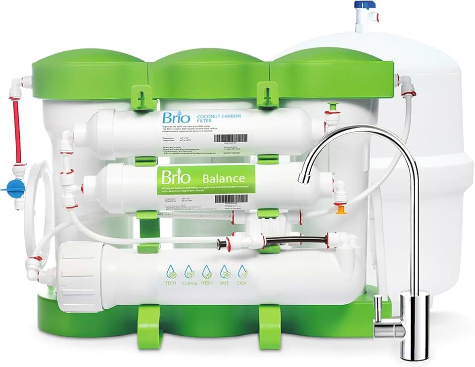 Brio Pure Balance 6-Stage Reverse Osmosis Undersink Water Filtration System, Remineralization, 75 GPD, WQA Gold Seal Certified for NSF 58, 372, & CSA Standards, Faucet Included