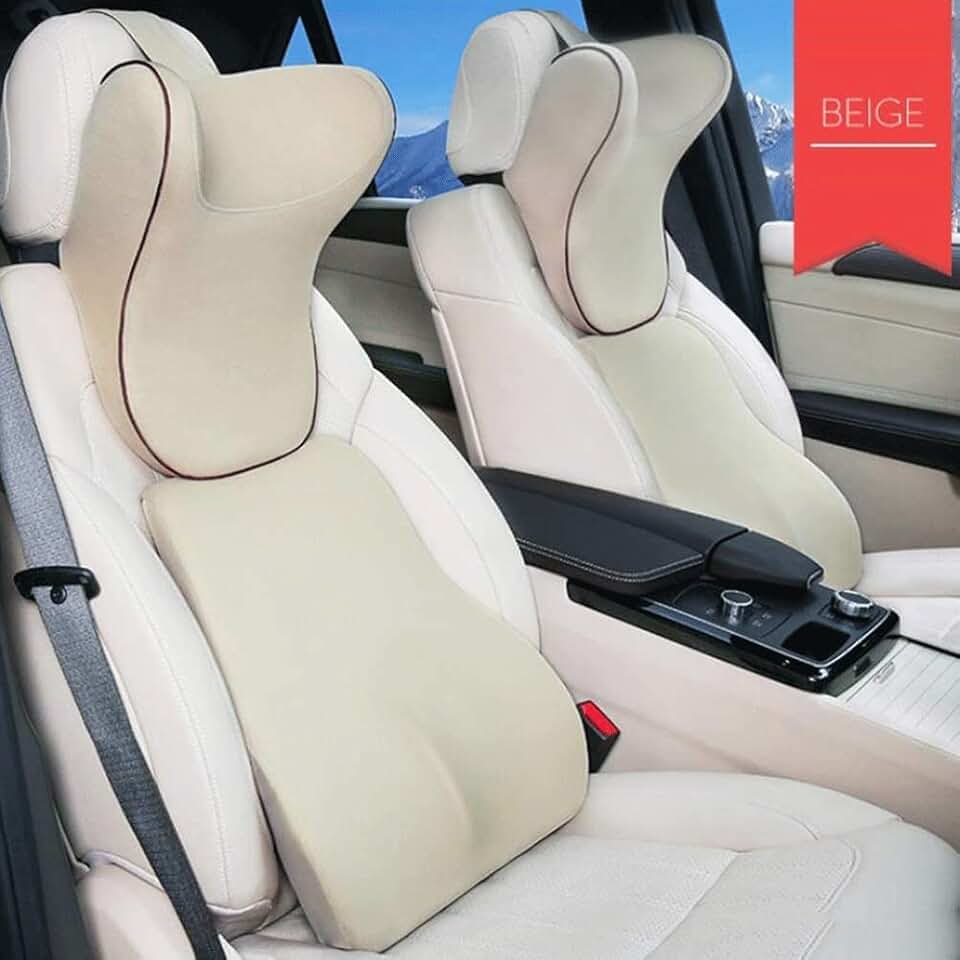 Lumbar Pillow - Car Headrest Lumbar Pillow Memory Cotton Car Pillow Car Neck Pillow Pillow Universal U-Shaped Comfort Set(Beige)
