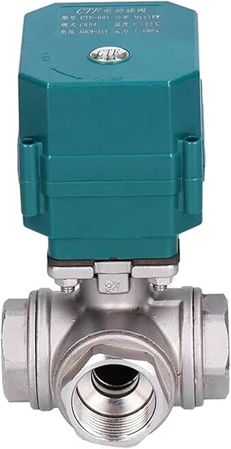 DN25 Motorized Ball Valve Stainless Steel 3-Way Full Bore Big Torque Ball Valve 2/3 Wire Electric Actuator AC220V DC24V DC12V 1Pcs(T TYPE_DC24V_CR01)
