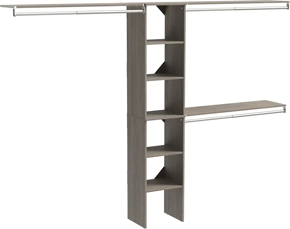 ClosetMaid SuiteSymphony Wood Closet Organizer Kit with Tower 3 Hang Rods, Top Shelves, Adjustable, Fits Spaces 5-9 ft. Wide, Graphite Grey