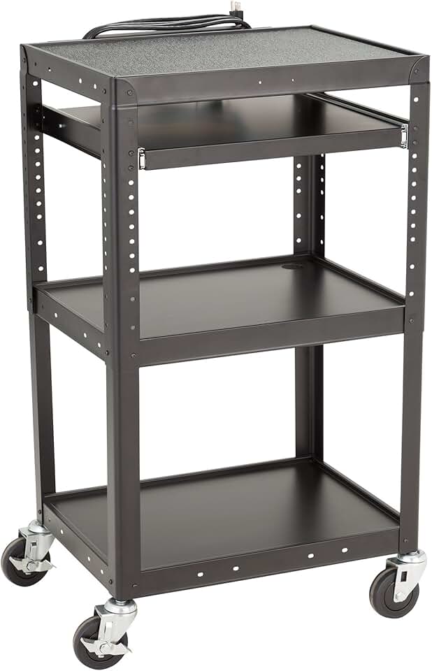 Norwood Commercial Furniture Adjustable Height Metal AV Cart with Electric Power & Sliding Tray, NOR-GNO1009-PK-SO