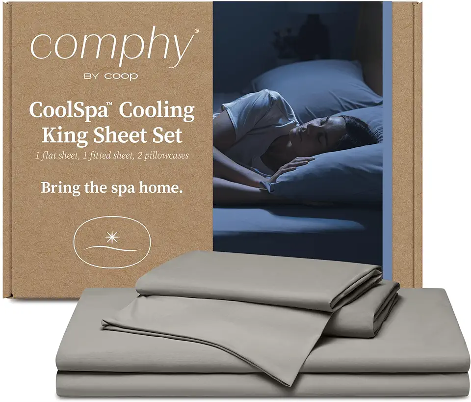 Comphy by Coop CoolSpa Cooling Bed Sheets, 4 Piece King Sheet Set, Dove Grey Breathable Cooling and Super Soft Sheets, Luxury Spa & Hotel Quality King Sheets, Cooling Sheets King Size Bed Set