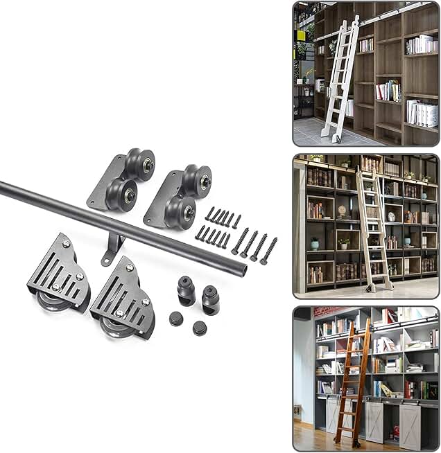 Sliding Library Hardware Rolling Track(No Ladder) 3.3ft-20ft Kit Wrought Iron Metal Does Not Rust Round Tube Sliding Library Hardware Rolling Full Set Track Kit (Size : 16ft/500cm