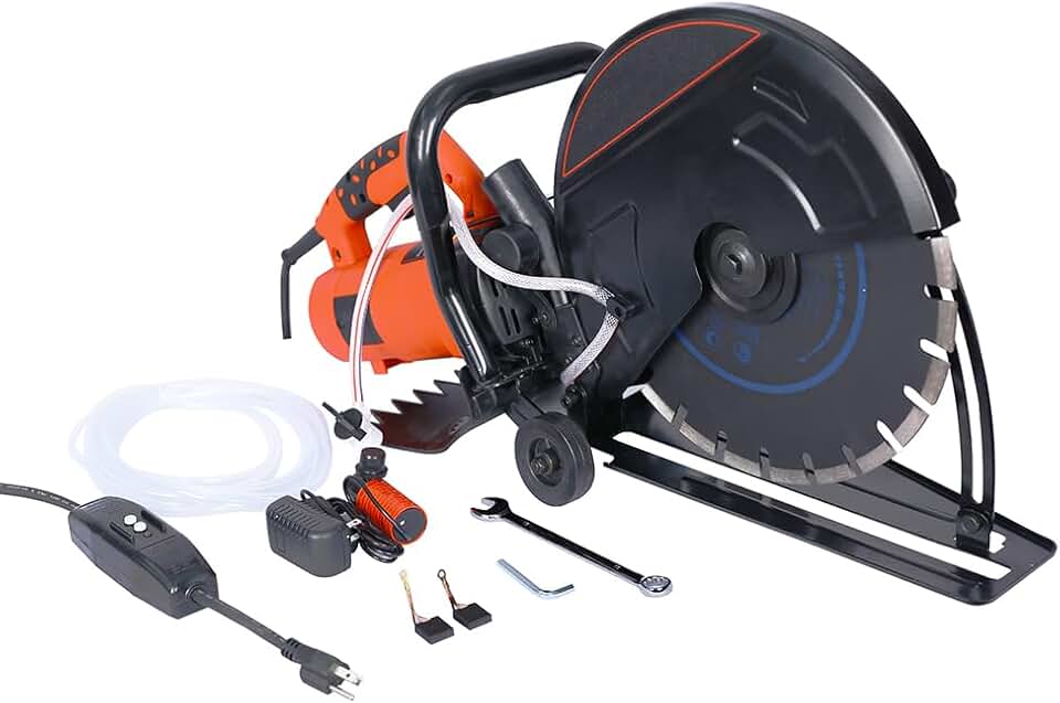 Electric Cut Off Saw, 14inch 2800w Wet/Dry Concrete Saw Cutter Guide Roller With Water Line Attachment For Granite, Porcelain,Wood,Stone