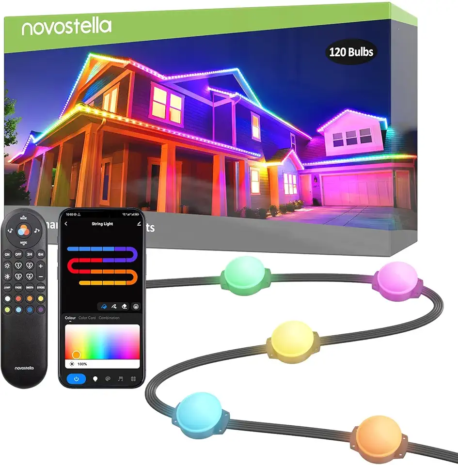 NOVOSTELLA Permanent Outdoor Lights, Smart RainbowColor RGB IC Light, 150ft (75x2) with 120 LED Eaves Lights IP65 Waterproof for Holidays, Christmas, Daily Lighting, WiFi APP Voice Control