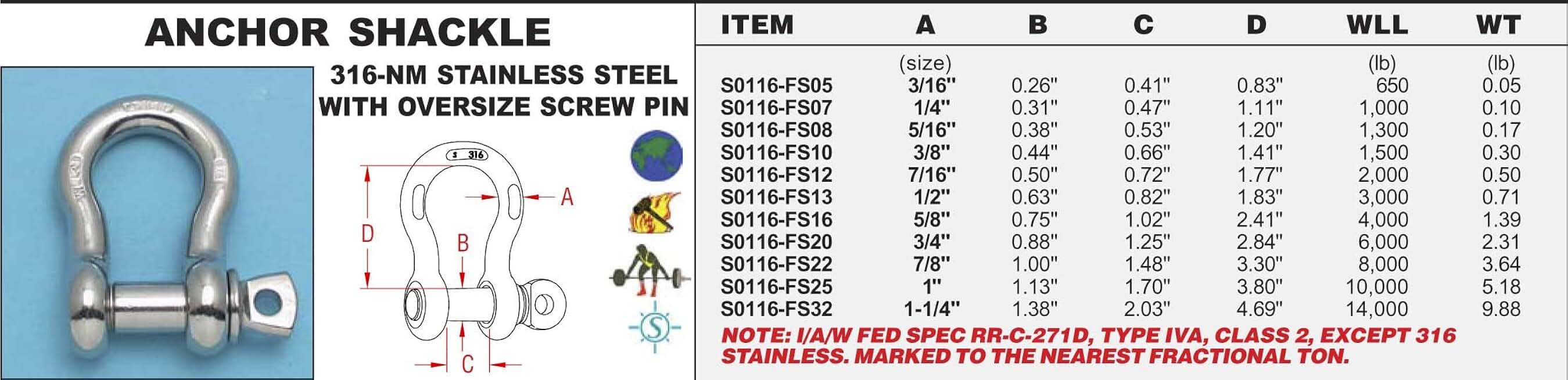 316-NM Stainless Steel Anchor Shackle w/Oversize Screw Pin 1-1/4" (S0116-FS32)