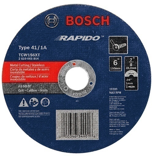 Bosch 6 Inch 60 Grit Rapido Arbor Type 1A Metal Cutting Abrasive Wheel