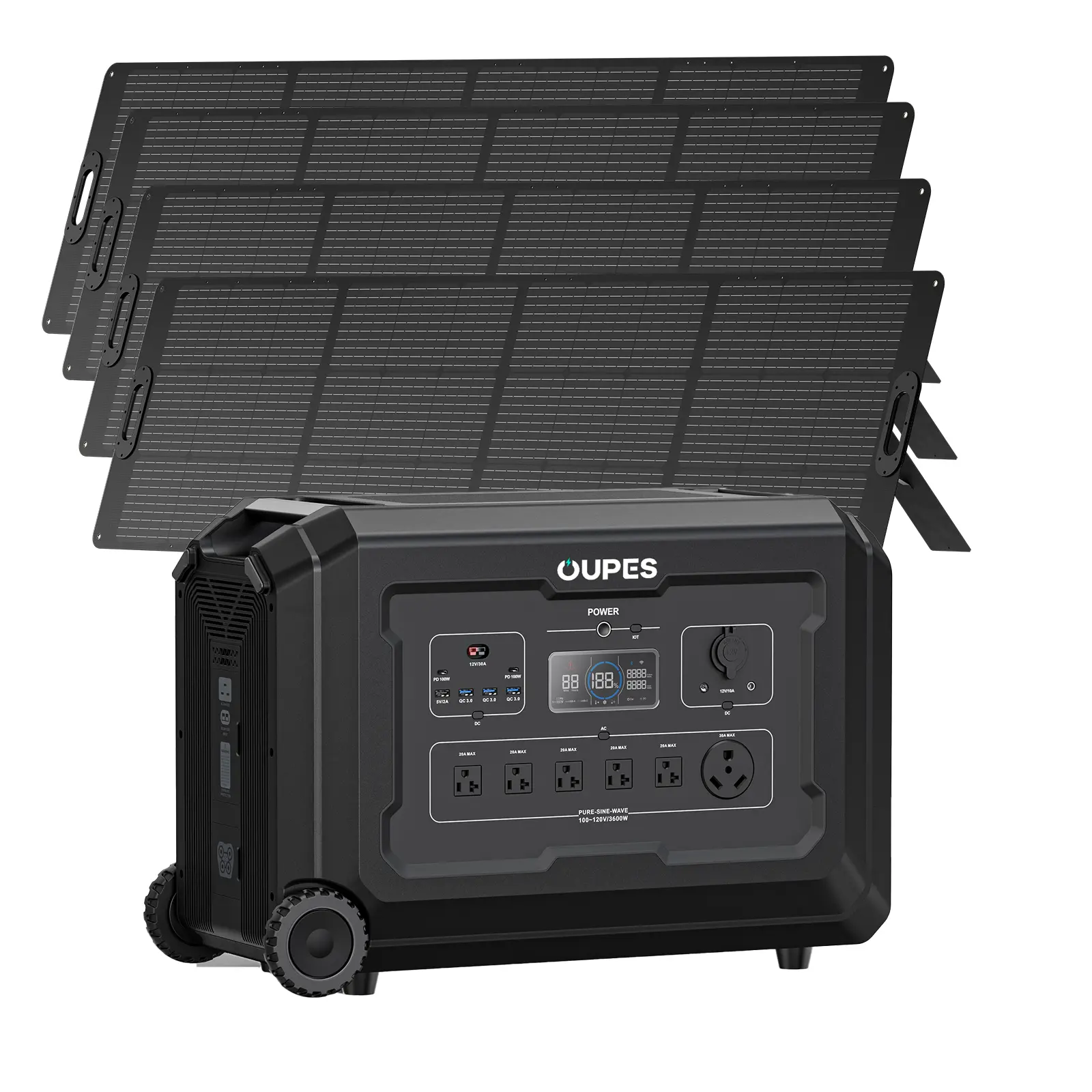 OUPES Mega 3 Portable Power Station 3600W, 3072Wh Solar Generator with 6x240W Solar Panels, Solar Battery Station Made for Emergency, Home Backup, Outdoor Camping RV/Van