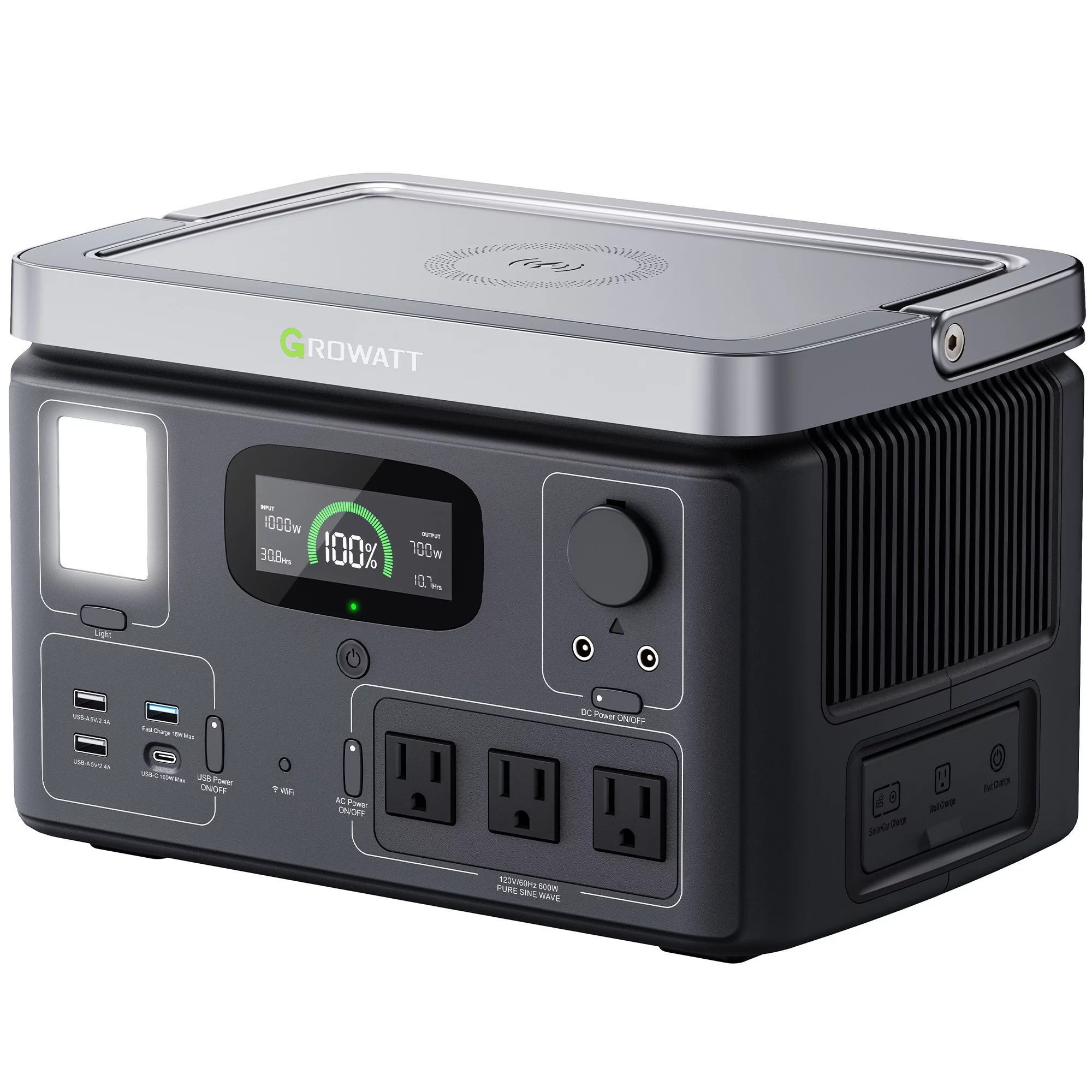 GROWATT VITA 550 Portable Power Station, 538Wh Capacity LiFePO4 Solar Generator, 600W AC Output for Outdoor Camping, RV, Home Backup, Emergency, off-Grid