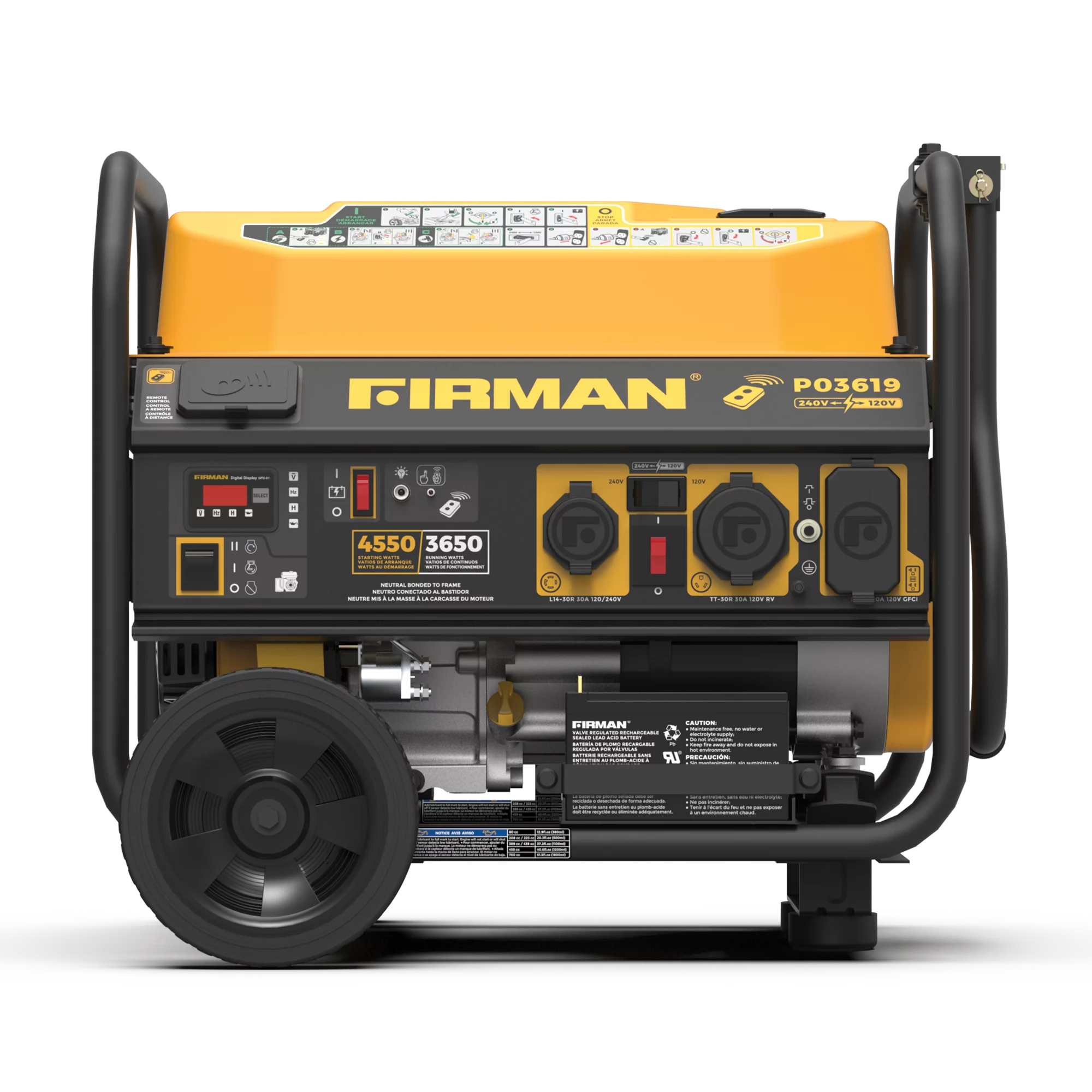 FIRMAN P03619 4550/3650 Watt 30A 120/240V Remote Start Gas Portable Generator cETL Certified With Wheel Kit