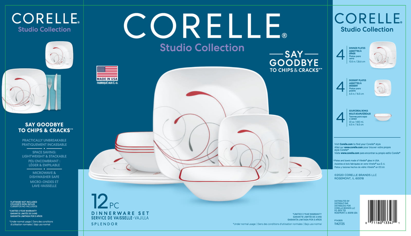 Corelle Splendor, Square, 12 Piece, Dinnerware Set